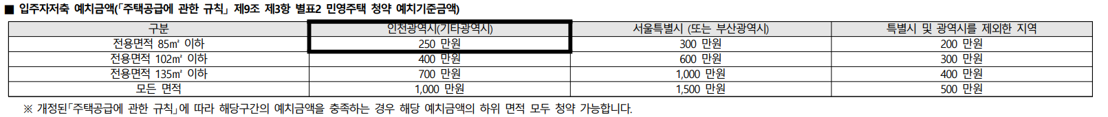 - 청약통장에 가입하여 2년이 지난 자로서 예치기준금액을 납입할 것