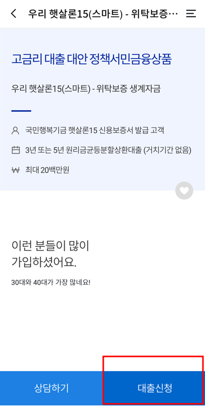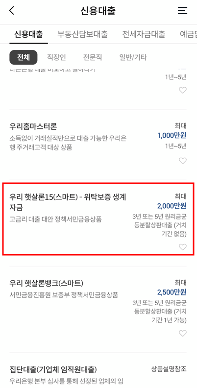 4. 우리 햇살론15(스마트) - 위탁보증 생계자금 클릭
