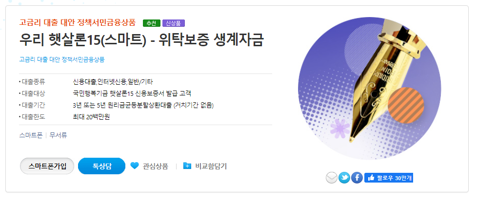 우리은행 햇살론15(스마트) - 위탁보증 생계자금