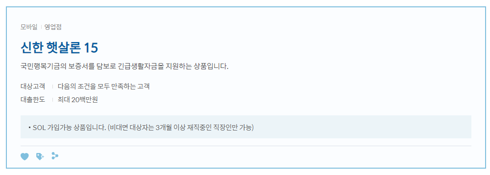 - *SOL(비대면) 대상 고객은 3개월 이상 재직중인 직장인만 가능합니다.