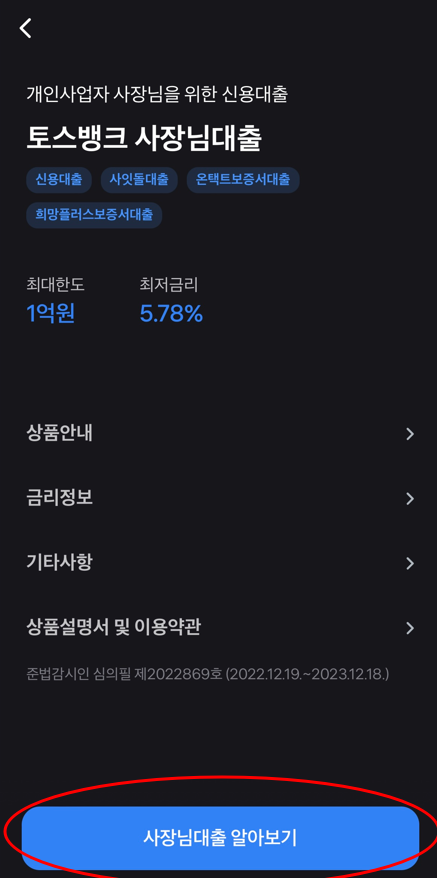 사장님 온택트 보증대출 : 최저 연 5.37% ~ 최고 연 5.4%