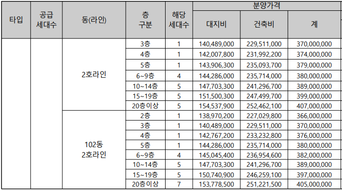 | 세대수 | 아파트 144세대, 오피스텔 14실, 근린생활시설 | 주차대수 | 192대(세대당 1.2대) |