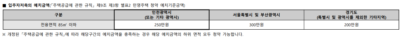 - 청약통장에 가입하여 2년이 지난 자로서 예치기준금액을 납입할 것