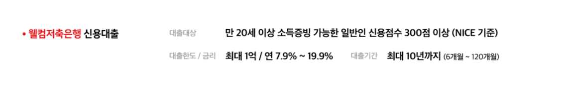 제가 소개드릴 대출은 웰컴저축은행 대출이에요. 조건이 까다롭지 않고 허가가 잘 나기로 유명한 웰컴저축은행이라 많은 분들에게 승인이 될 것 같아 소개드려요.