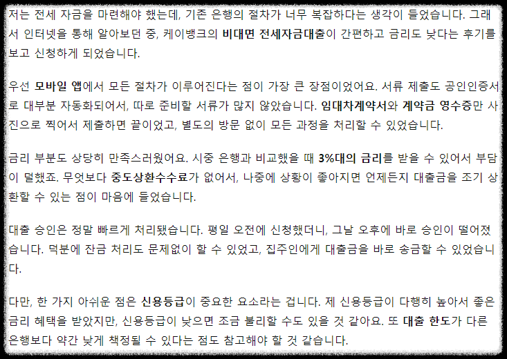케이뱅크 전세대출 후기
