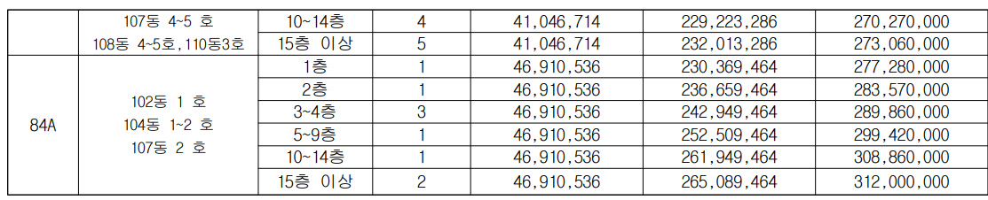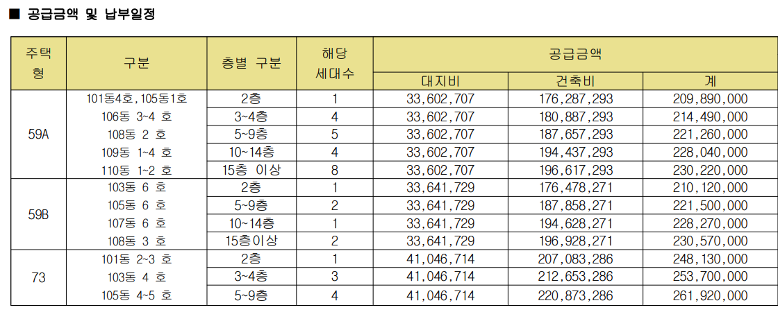 해당 분양가는 각 평형별 최고가 기준이며 자세한 분양가는 위 사진을 참고해주세요.