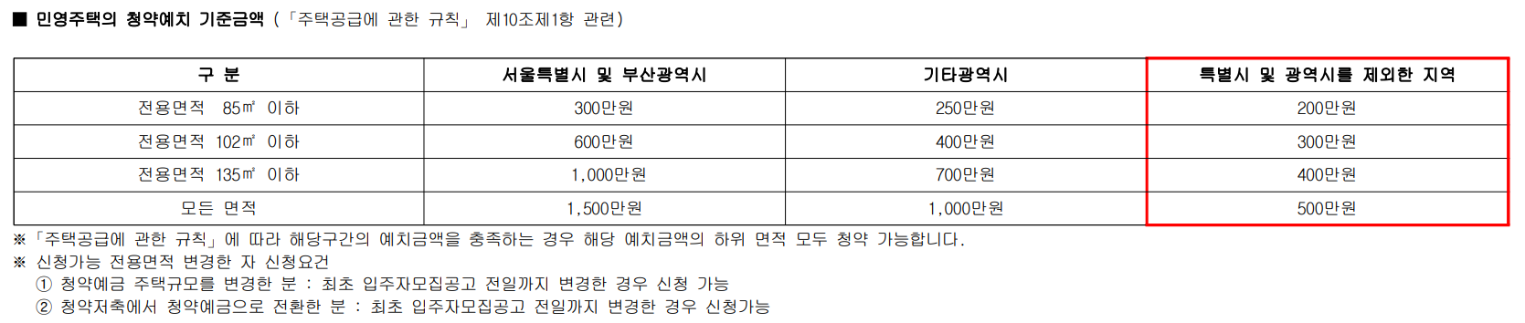 청약 예치금 기준액