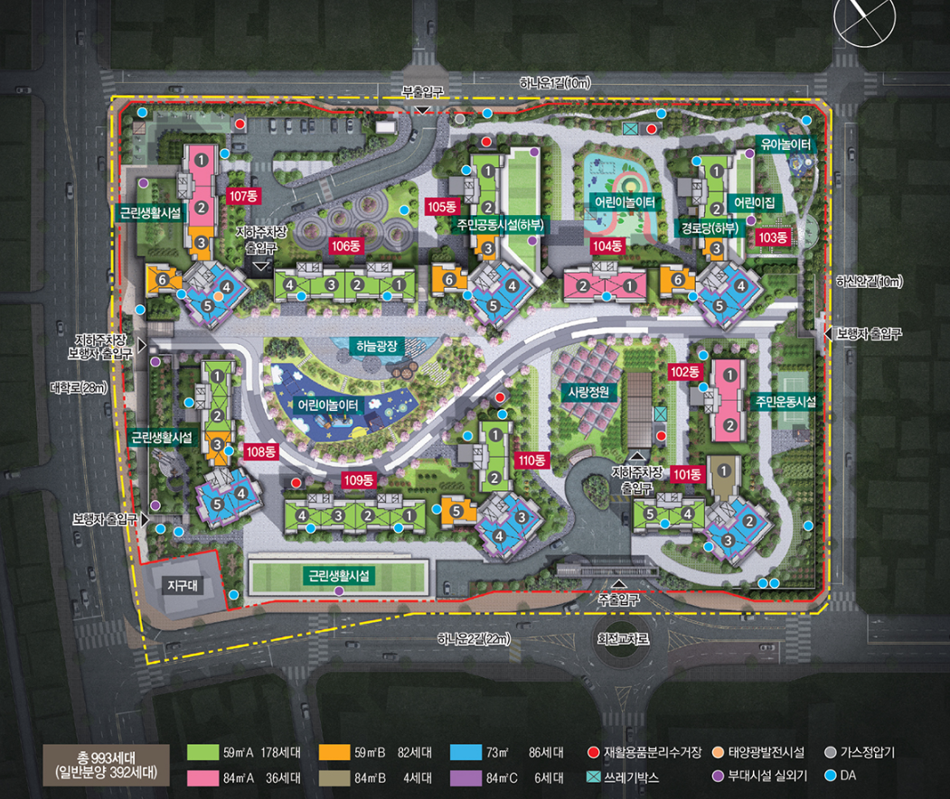 | 세대수 | 총 993세대(2차 일반분양 54세대) | 주차대수 | 총 1,275대 |