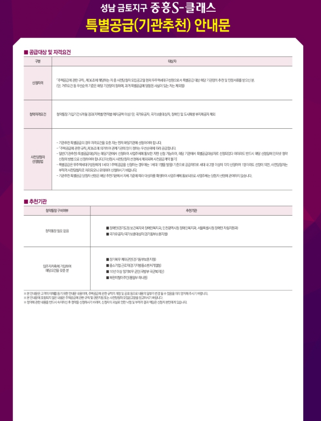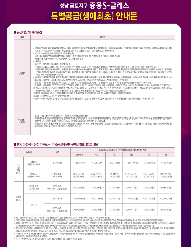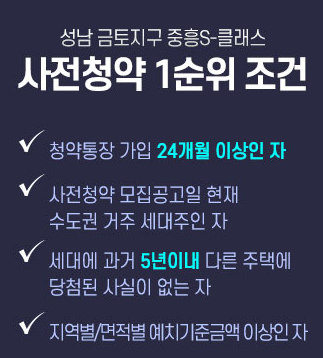 성남 금토지구 A-3블록 중흥S-클래스 공급대상 및 분양가