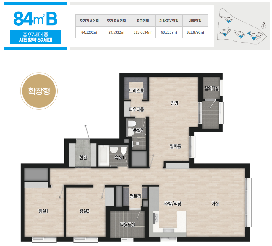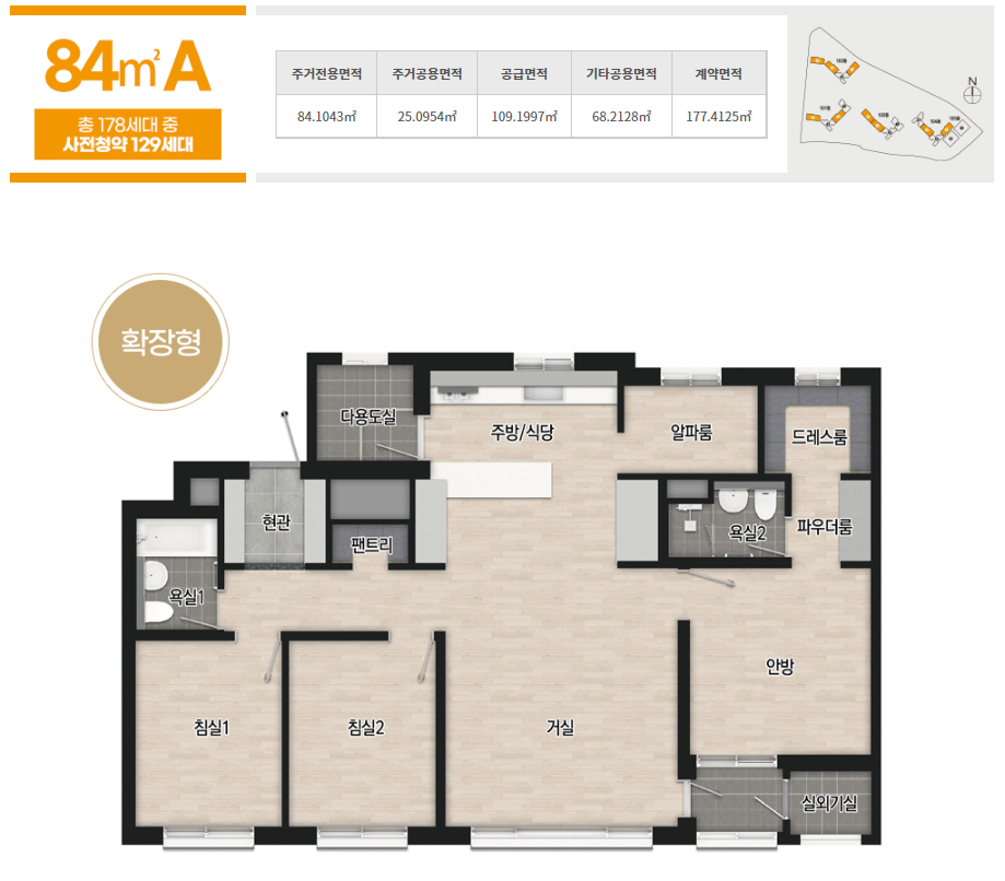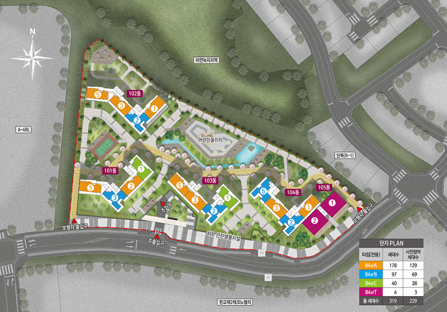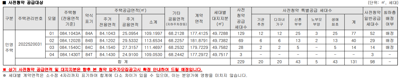 공급규모 : 아파트 지하 2층, 지상 18~20층 5개동 총 319세대 중 사전청약 공급 229세대