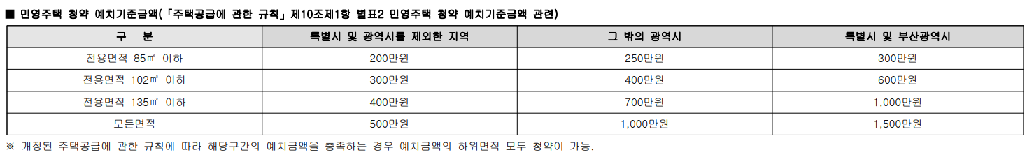 청약 예치금 기준액