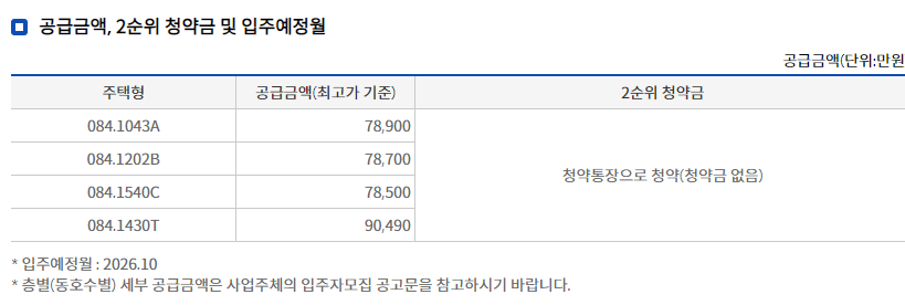 입주시기 : 2026년 10월 예정(정확한 입주일자는 추후 통보 예정)