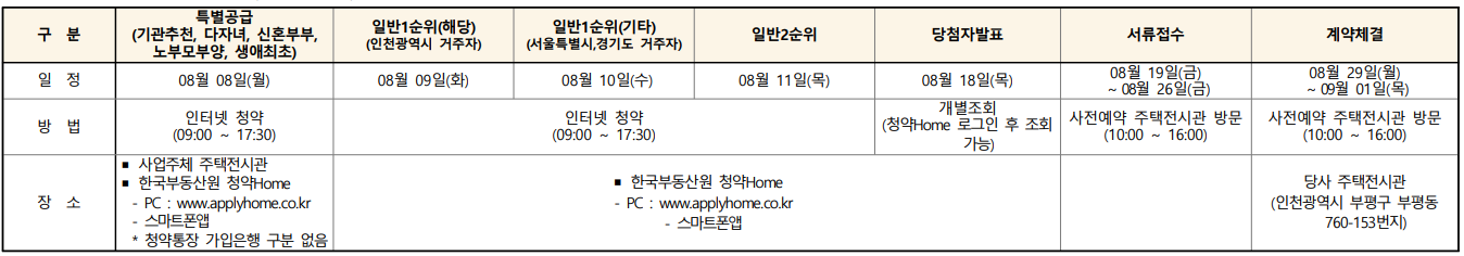 e편한세상 부평역 센트럴파크 일반공급 신청자격 및 당첨자 선정방법