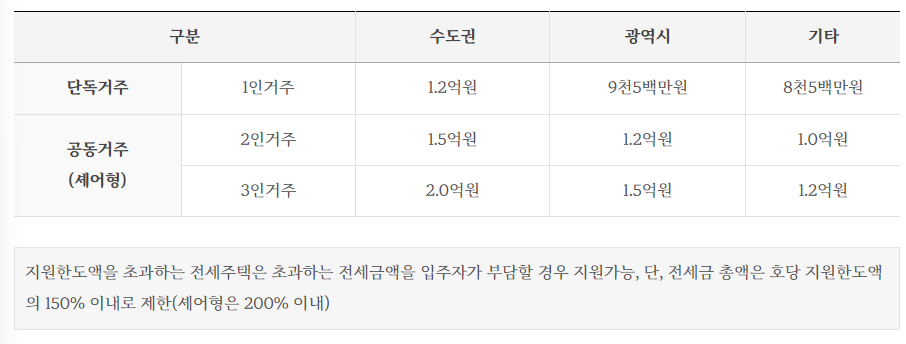 전세금 지원 한도액