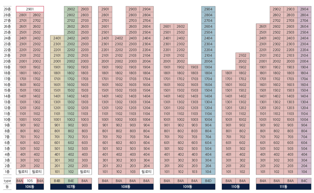 | 용도 | 공동주택(아파트), 근린생활시설 | 규모 | 지하 5층, 최대 29층 11개동 |