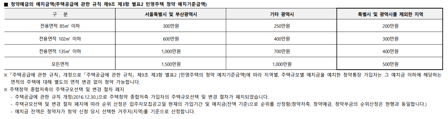 청약 예치금 기준액