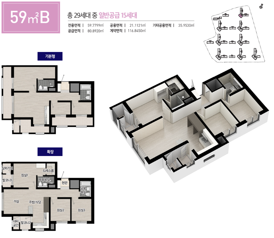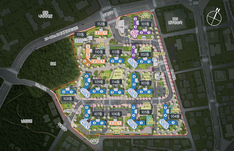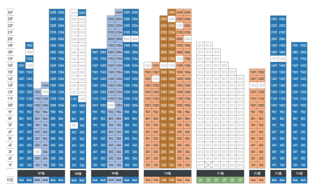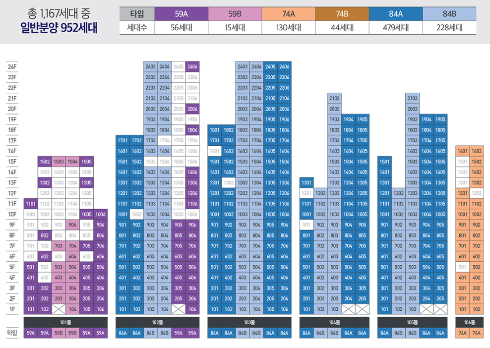 | 세대수 | 총 1,167세대 | 규모 | 지하2층 ~ 지상 최고 24층 / 14개동 |