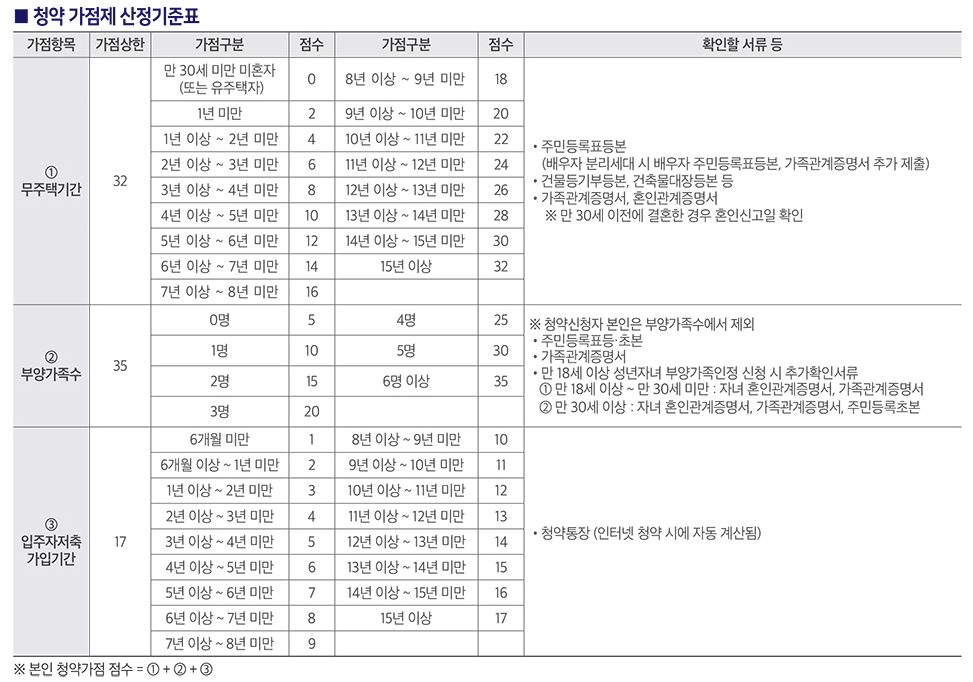 주택청약 1순위 조건 및 청약 점수 계산방법
