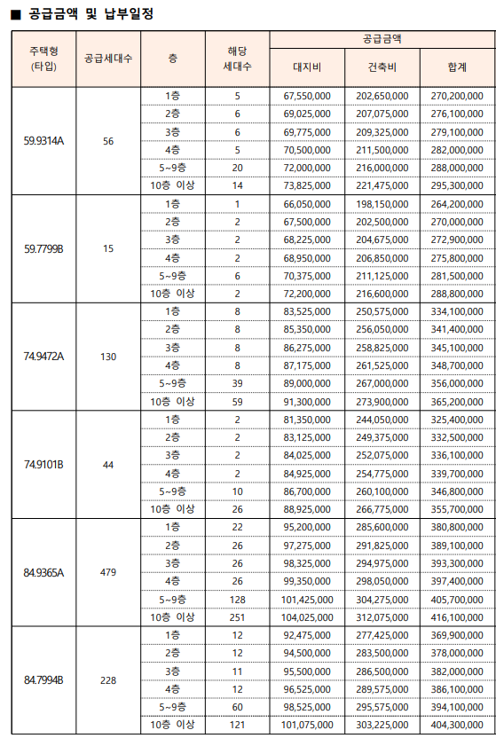 해당 표에 나와있는 분양가는 최고가 기준임으로 자세한 층별 평형별 분양가는 위에 사진을 참고하시면 되겠습니다.