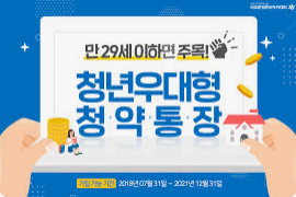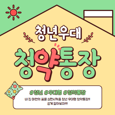 청년 우대형 청약통장이란 국토교통부에서 2018년 7월에 출시한 20~30대 젊은 층들을 위한 금융상품으로 매울 2만원에서 최대 50만원까지 자유롭게 청약 납부가 가능하며, 내 집 마련의 꿈을 위해 목돈 저축을 하는 청년들에게 높은 예금 금리의 저축 혜택과 미래의 주택 청약에도 사용될 수 있는 청년 우대형 청약통장 상품입니다.