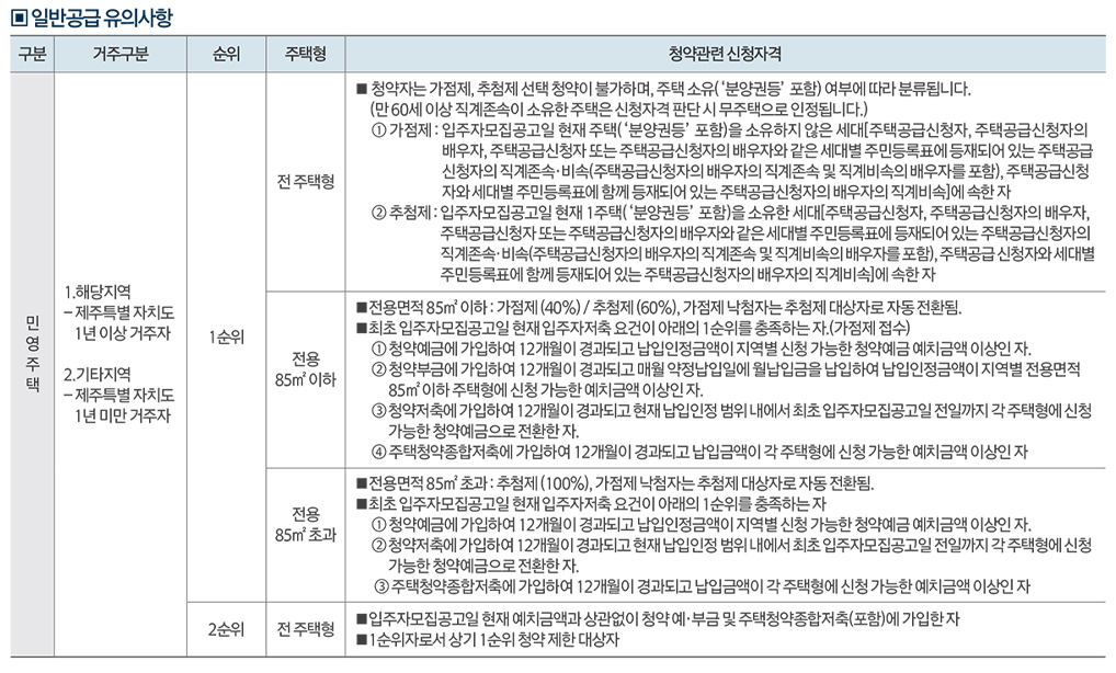 일반공급 신청자격 및 당첨자 선정방법