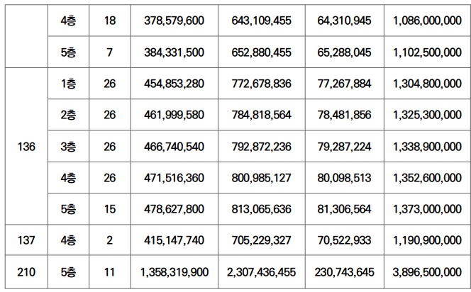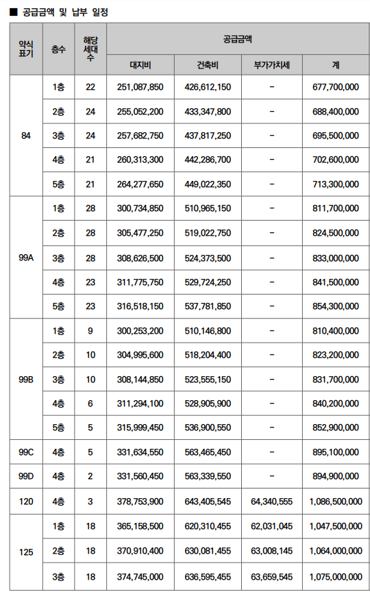 | 주택형 | 공급가(최고가 기준) |