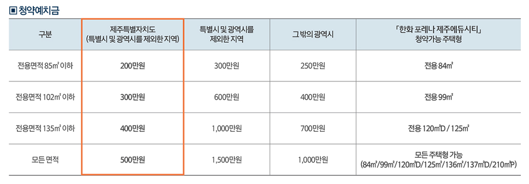 청약 예치금 기준액