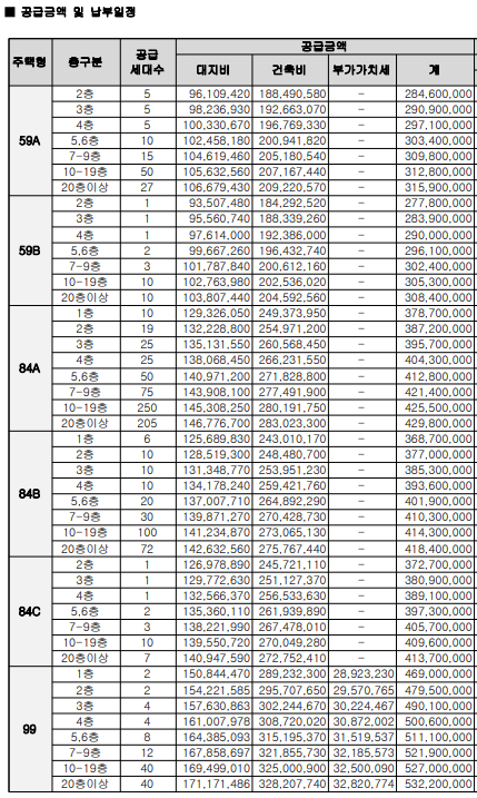 해당 표의 분양가는 최고가 기준임으로, 자세한 층별 평형별 분양가는 위 사진을 참고해주시기 바랍니다.