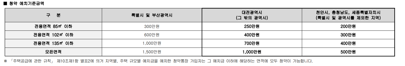 청약 예치금 기준액