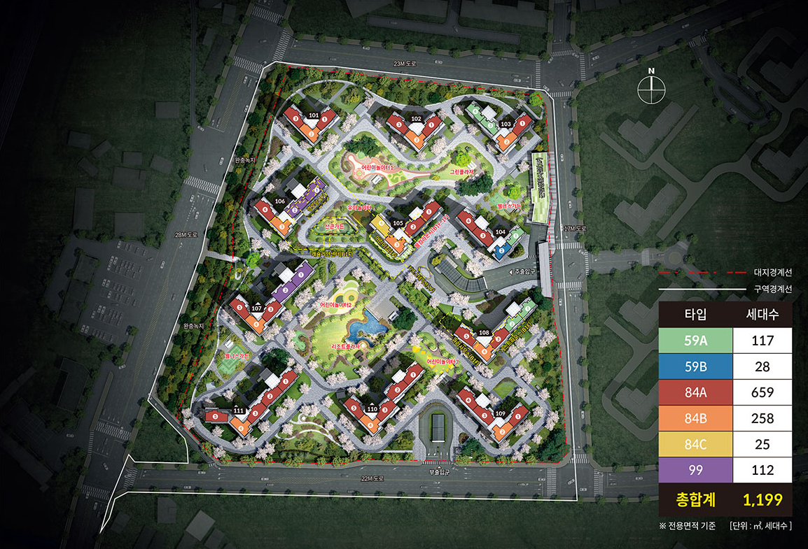 | 대지위치 | 천안시 동남구 청당동 361-13번지 일원 | 세대수 | 총 1,199세대 |