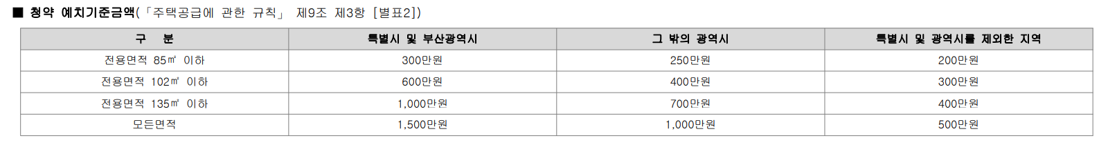 청약 예치금 기준액