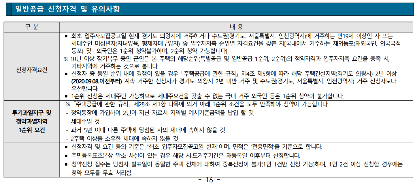입주자모집공고일 현재 의왕시에 거주하거나 수도권(경기도, 서울특별시, 인천광역시) 지역에 거주하는 만19세 이상인 자 또는 세대주인 미성년자(자녀양육, 형제자매부양) 중 입주자저축 순위별 자격요건을 갖춘자(국내에서 거주하는 재외동포, 재외국민, 외국국적 동포)를 대상으로 주택형별 청약순위 별로 청약 접수가 가능합니다. 단, 외국인은 1순위 청약이 불가하며 2순위 청약은 가능합니다.