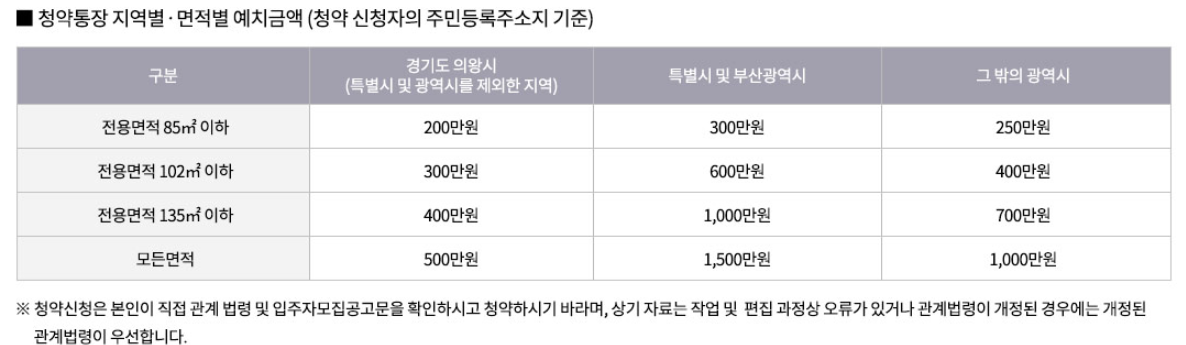 - 청약통장에 가입하여 2년이 지난 자로서 예치기준금액을 납입할 것