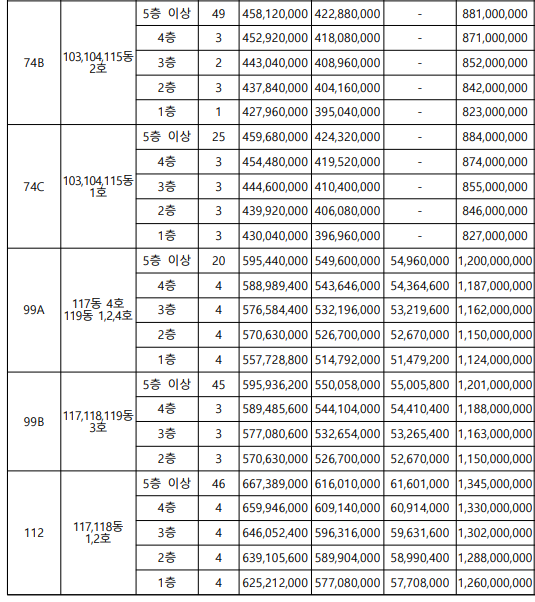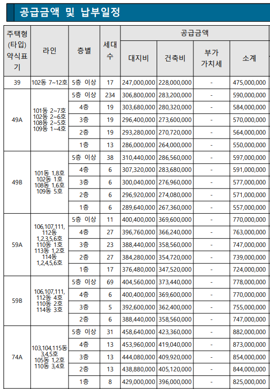 해당 표의 분양가는 최고가 기준임으로 자세한 층별 평형별 분양가는 위 사진을 참고하시면 됩니다.