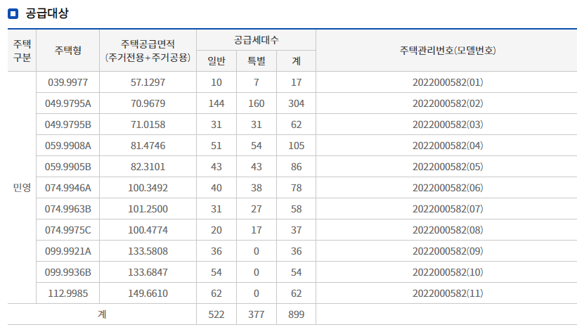 특별공급 : 2022년 09월 19일(월)