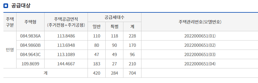 - 전용면적 85㎡이하 세대 : 가점제(40%) 추첨제(60%) 적용, 가점제 낙첨자는 추첨제 대상자로 자동 전환됨