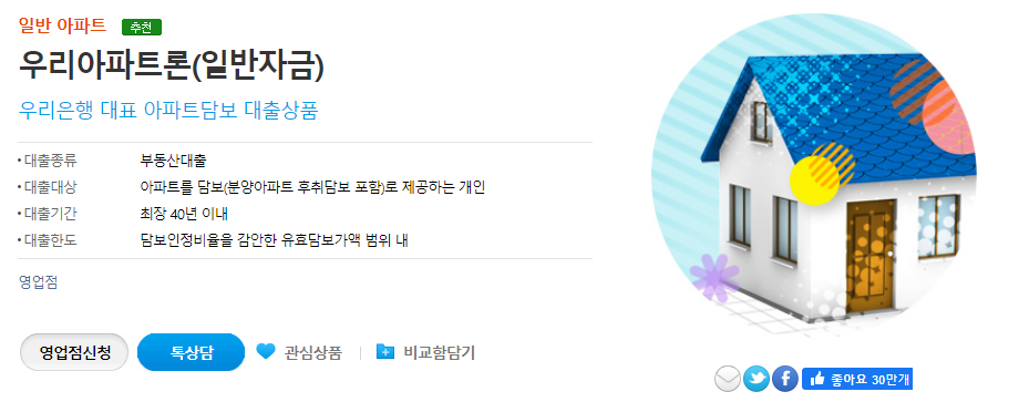 - 특징 : 은행방문 없이 모바일로 신청 가능한 아파트담보대출