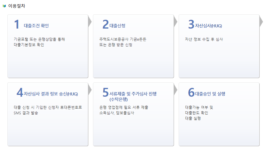- 대출 접수일 현재 민법상 성년인 세대주 그리고 세대주를 포함한 세대원 전원 무주택인 자연체, 대위변제, 대지급, 부도, 금융질서문란정보, 공공기록정보, 특수기록정보, 관련인 정보, 신용회복지원등록정보 사항이 없는 사람