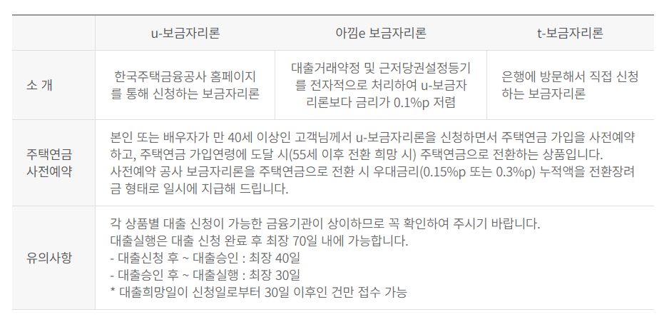- u-보금자리론 : 한국주택금융공사 홈페이지를 통해 신청하는 보금자리론