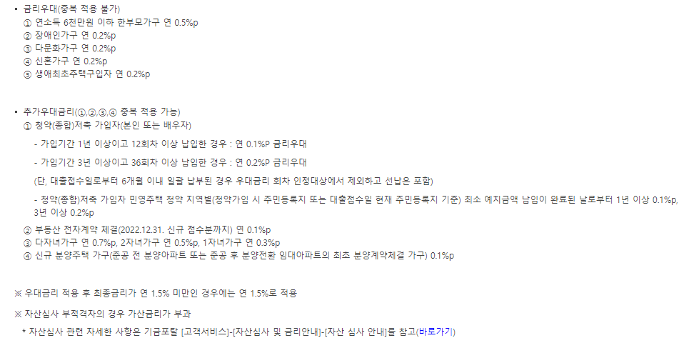 또한, 금리 우대사항도 있는데요. 금리 우대사항은 다음과 같습니다.