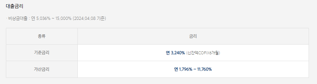 다음은 꾸준한 성장을 보이는 케이뱅크의 비상금대출 입니다.