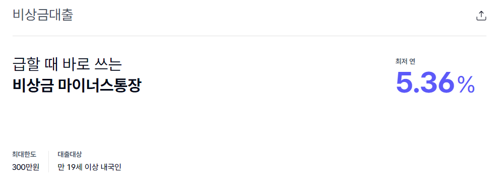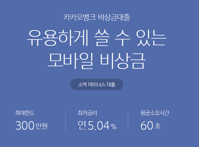 다음은 대표적인 인터넷은행인 카카오뱅크의 비상금 대출입니다.