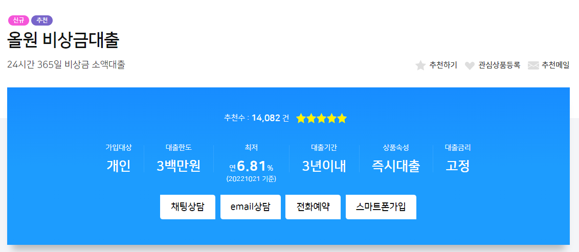 | 5. 하나은행 하나원큐 비상금대출 | 👉금리 한도 조회 바로가기 |