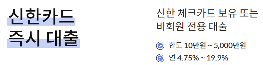 - 대출자격 : 신한 체크카드 보유 또는 비회원 전용 대출