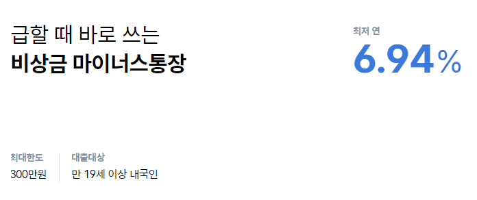 | 6. 카카오뱅크 비상금대출 | 👉금리 한도 조회 바로가기 |