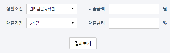 - 상환방법 : 원리금균등상환, 원금균등상환