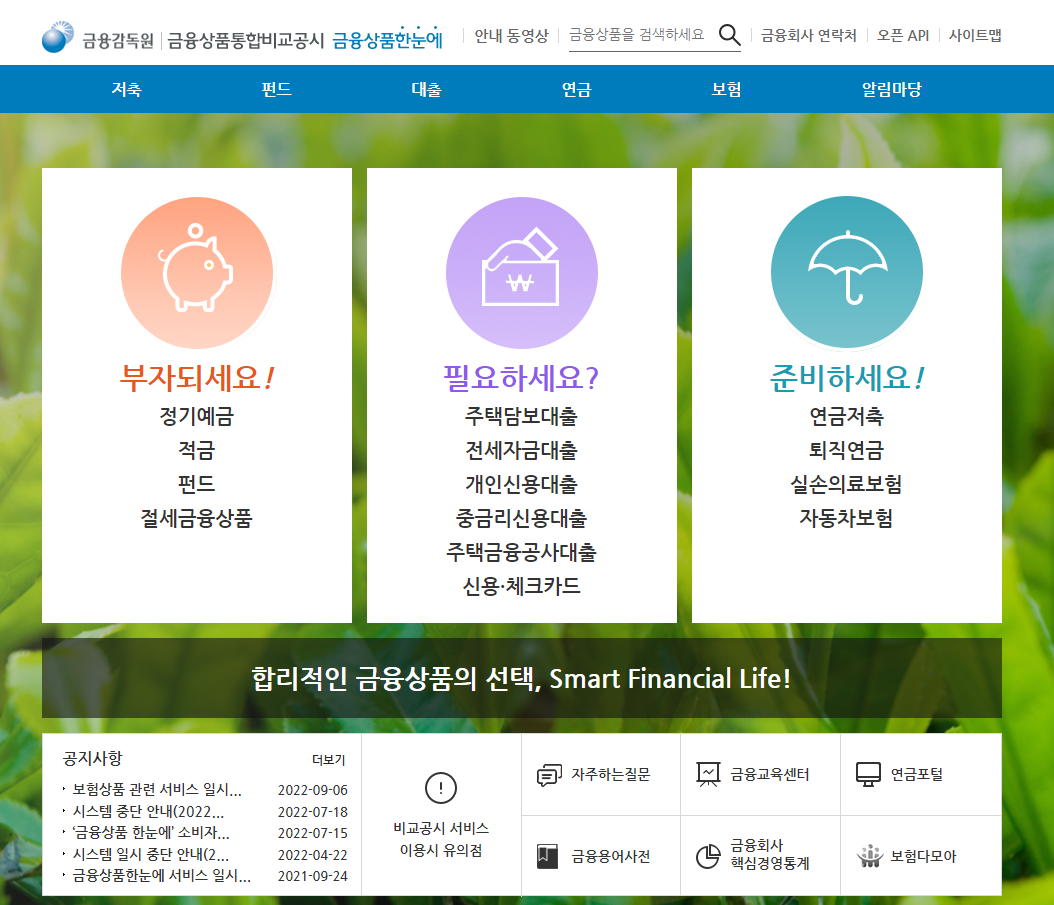 두번째는 금융감독원에서 운영하는 금융상품 한눈에 라는 사이트입니다.