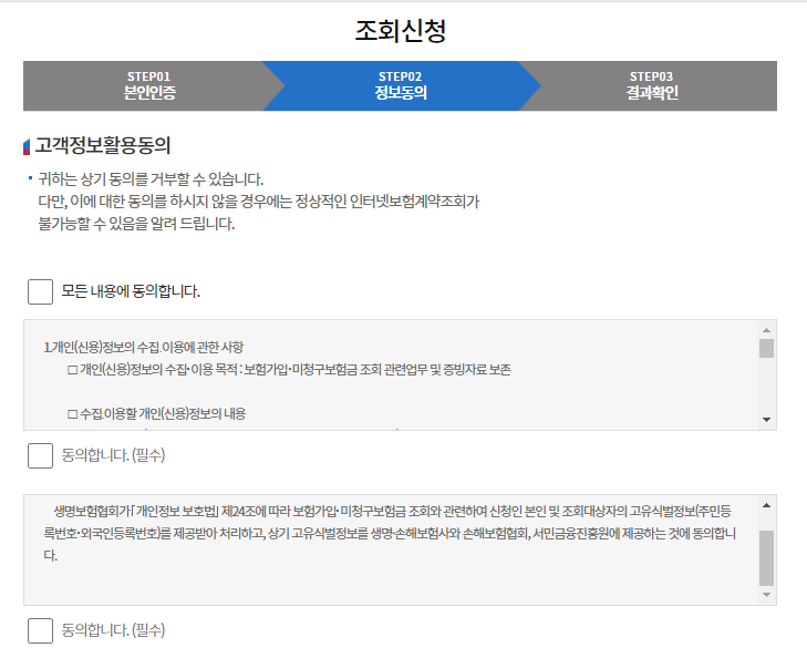 다음으로 고객정보활용 동의서에 모두 동의를 눌러주시고 조회하기 버튼을 클릭하시면 끝입니다.