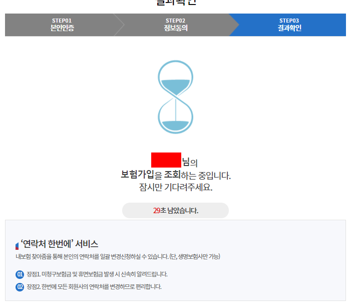 이렇게 몇 초의 시간이 지나면 나의 숨은 보험금들을 모두 찾을 수 있습니다.