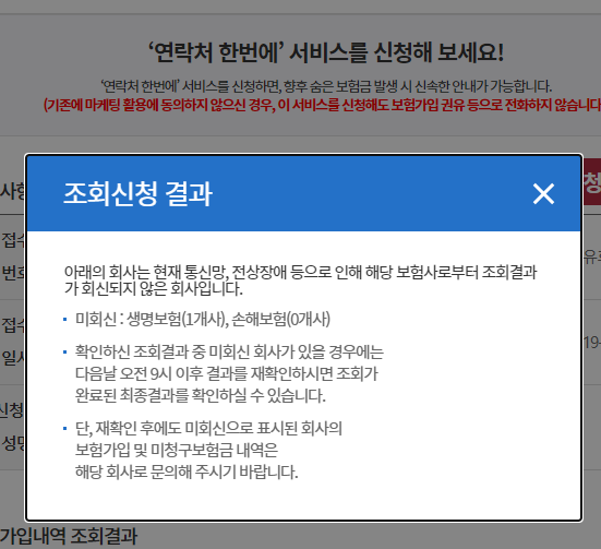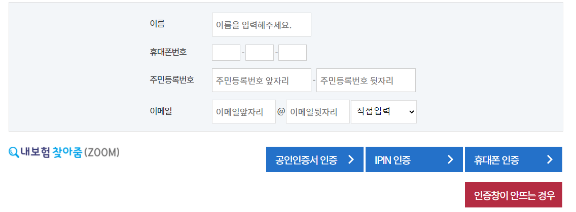 혹시 검색하시는게 귀찮으신 분들을 위해 바로 내보험 찾아줌 사이트로 가는 링크를 남겨놓겠습니다.